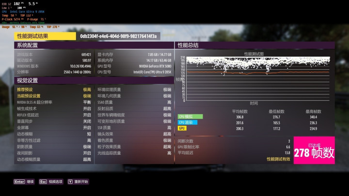 另外我们也测试了《极限竞速:地平线5》,这款游戏因为优化极其出色,所以Area-51这套配置运行起来毫无压力,2K分辨率、最高画质平均流畅度达到278fps,配合AW2725D显示器丝滑的显示效果,游戏体验没得说。