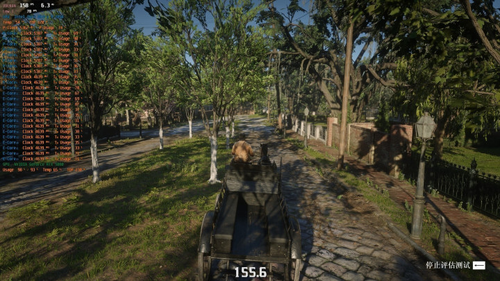 第二款测试游戏我们来看看硬件性能要求较高的《荒野大镖客2》,虽然它是一款老游戏,但可以代表当前主流3A游戏的硬件性能需求。最高画质、开启DLSS平衡档位,平均帧率可以达到155fps,运行极为流畅。所以使用Area-51玩当前主流3A游戏,2K分辨率把画质拉满是基本没有压力的。
