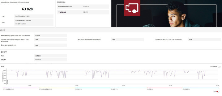 其次使用Area-51来做视频剪辑任务也是相当靠谱的选择,测试时我们开启了GPU硬件加速,得分达到了惊人的63828分,剪辑效率出色,可以轻松胜任4K甚至8K视频的剪辑需求,也能满足如达芬奇软件中的画面物体实时追踪等极重负载任务的需求。
