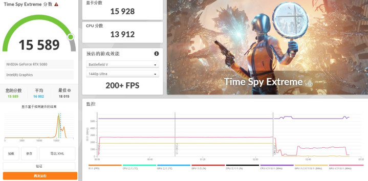 Speed Way DX12 1440p分辨率《战地V》预估游戏性能,平均帧数为89.89fps,图形性能评分8989,表现相当不错;